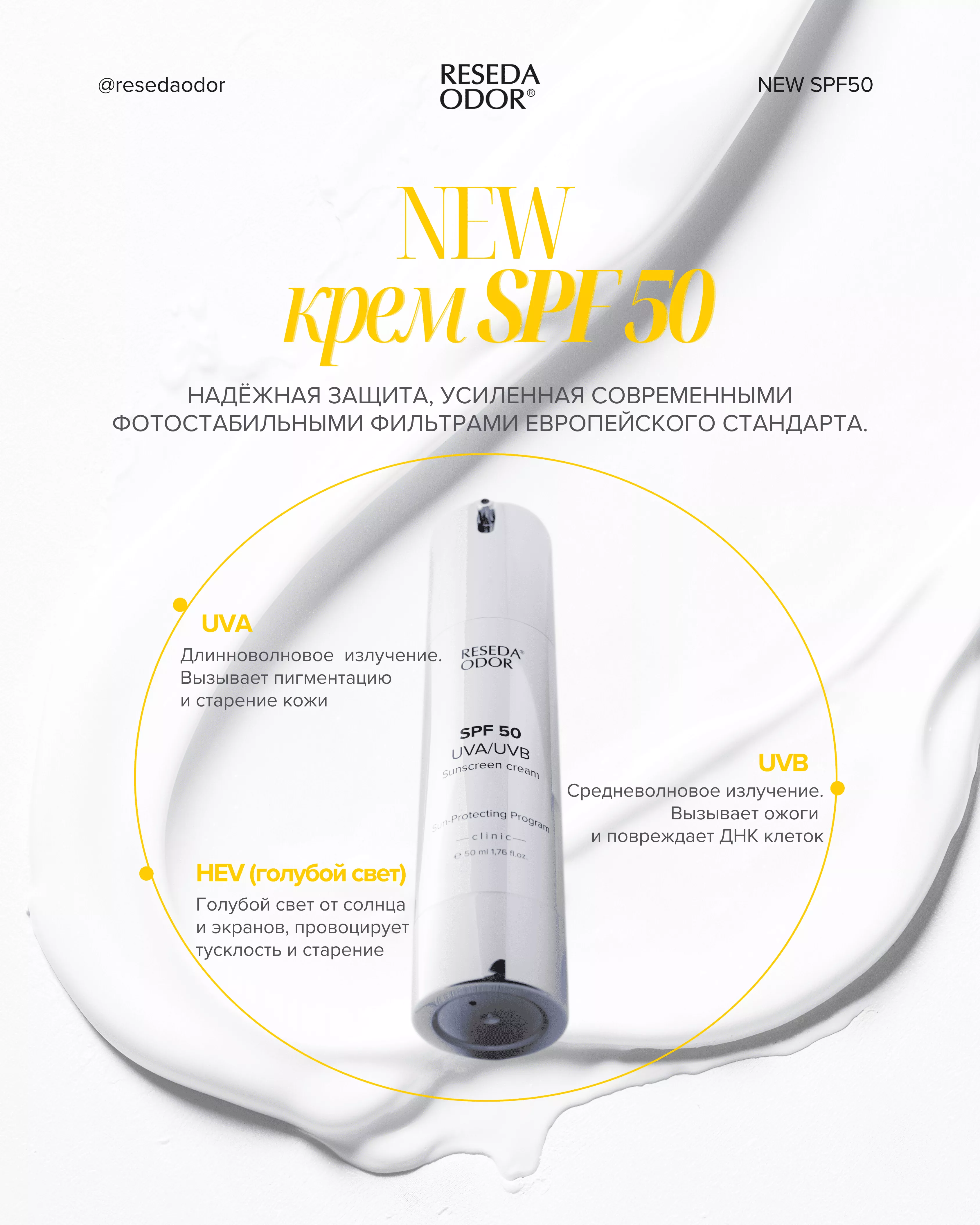 - Обеспечивает широкий спектр защиты от UVA, UVB и HEV-излучения
