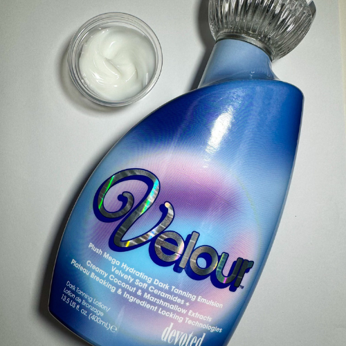 Подарите своей коже нежные объятия с Devoted Creations Velour — роскошным лосьоном, который окутывает вас шелковистым и питательным увлажнением. Эта супер мягкая кремовая формула не только дарит восхитительный бронзовый оттенок загара, но и делает кожу невероятно гладкой и бархатистой. Velour насыщен керамидами, коллагеном и ультра увлажняющей гиалуроновой кислотой, способствующими восстановлению молодости, красоты и здоровья кожи. Антиоксиданты зефира и электролиты розовой воды нежно успокаивают и освежают, а бакучиол разглаживает морщинки и придает коже сияние молодости. Velour — это больше, чем просто лосьон для загара. Это ощущение, словно вы окунаетесь в пушистое облако, придавая вашим образу и коже волшебное атласное сияние!