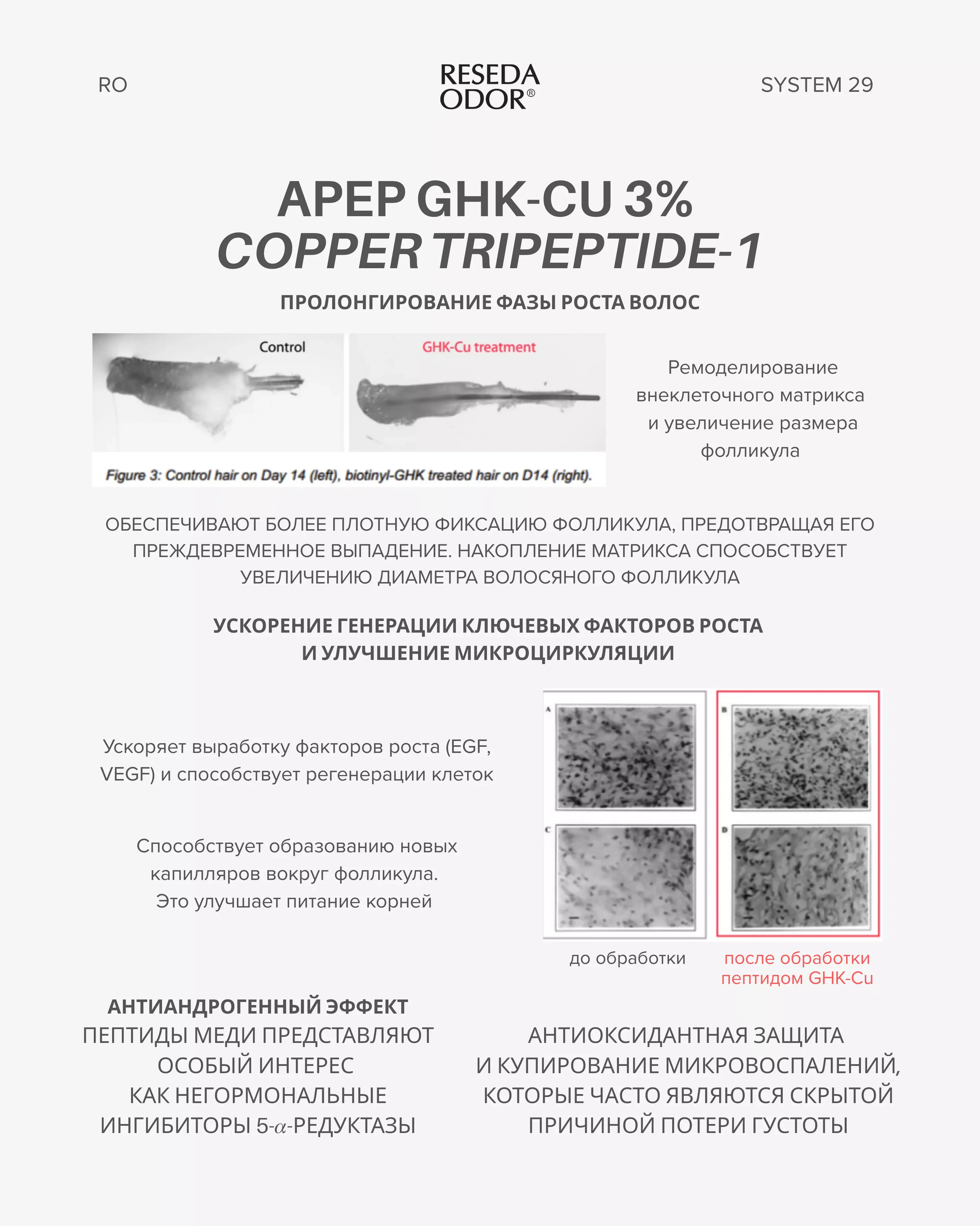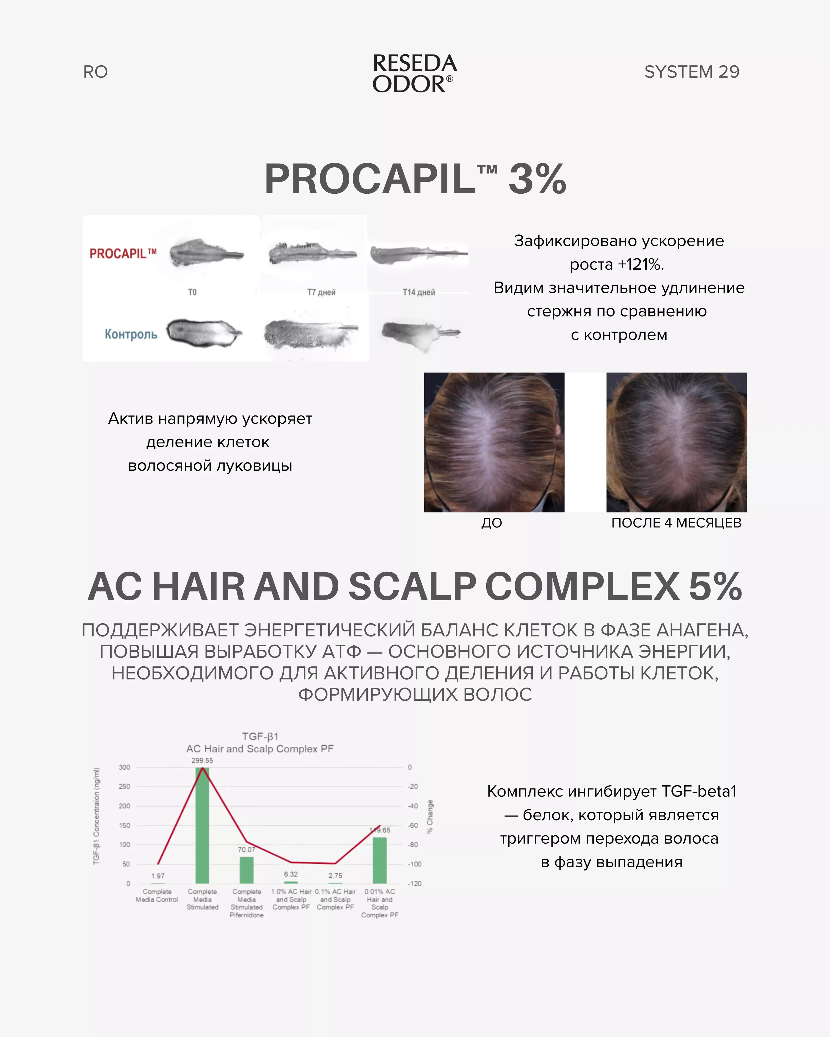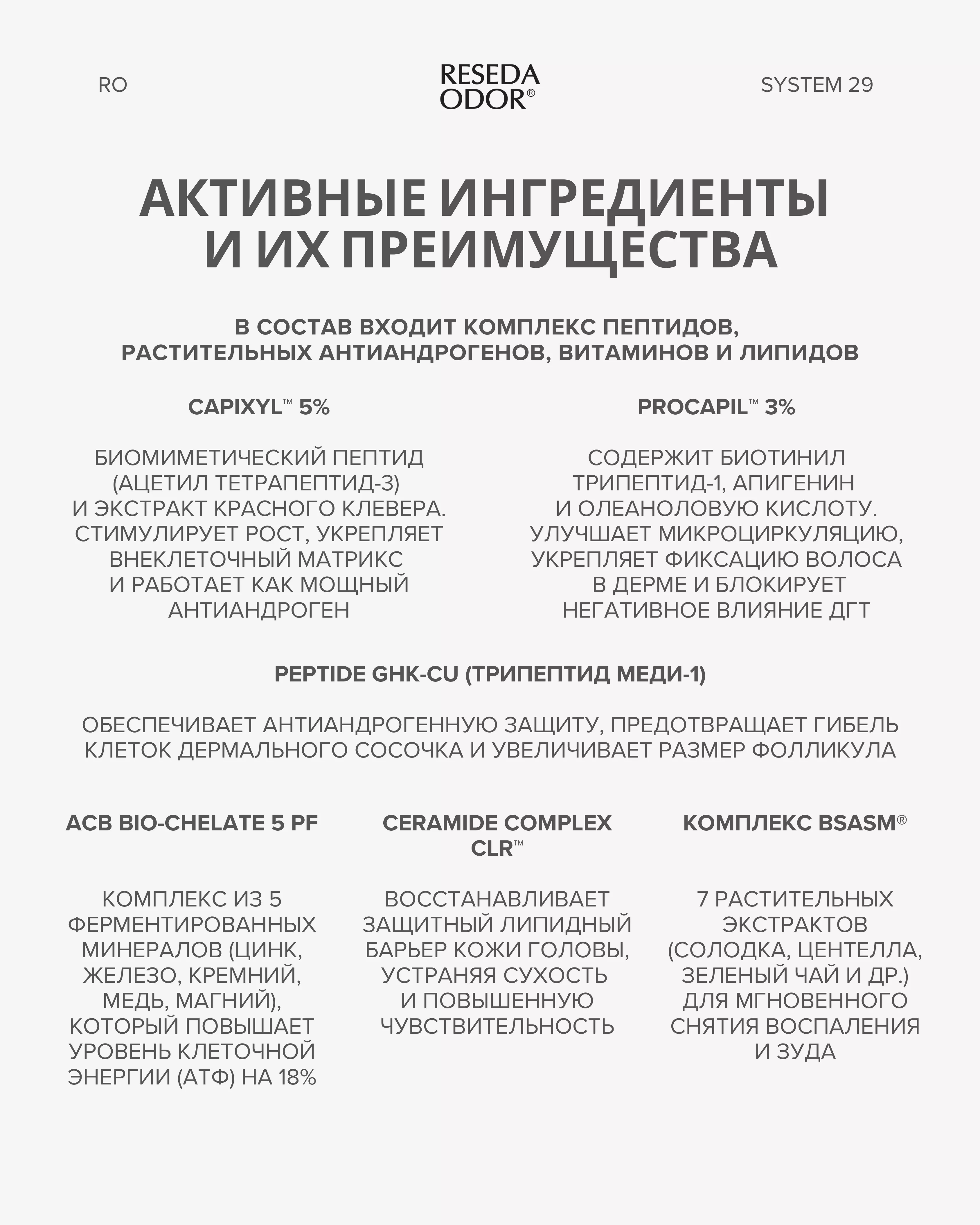 Сыворотка Peptide Hair Growth System 29 является мультитаргетным средством и эффективна при следующих состояниях