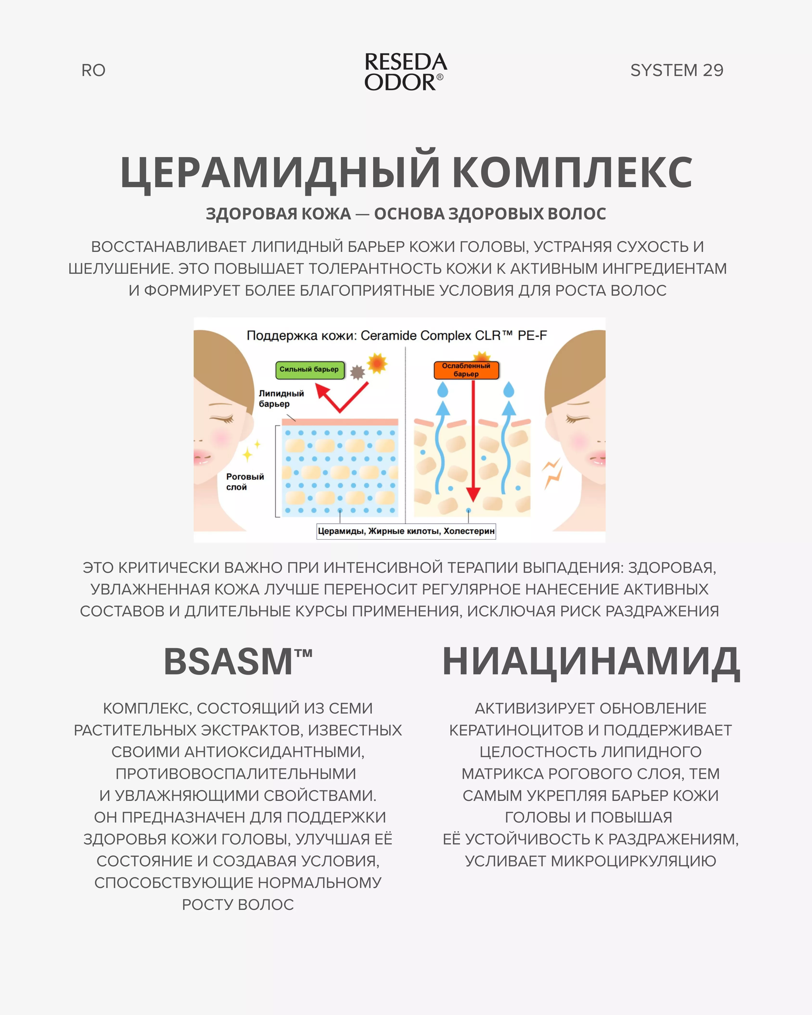 - Дисбиоз кожи головы и нарушение барьера: Восстанавливает микробиом и липидный слой, устраняя микровоспаление, которое часто сопровождает выпадение.