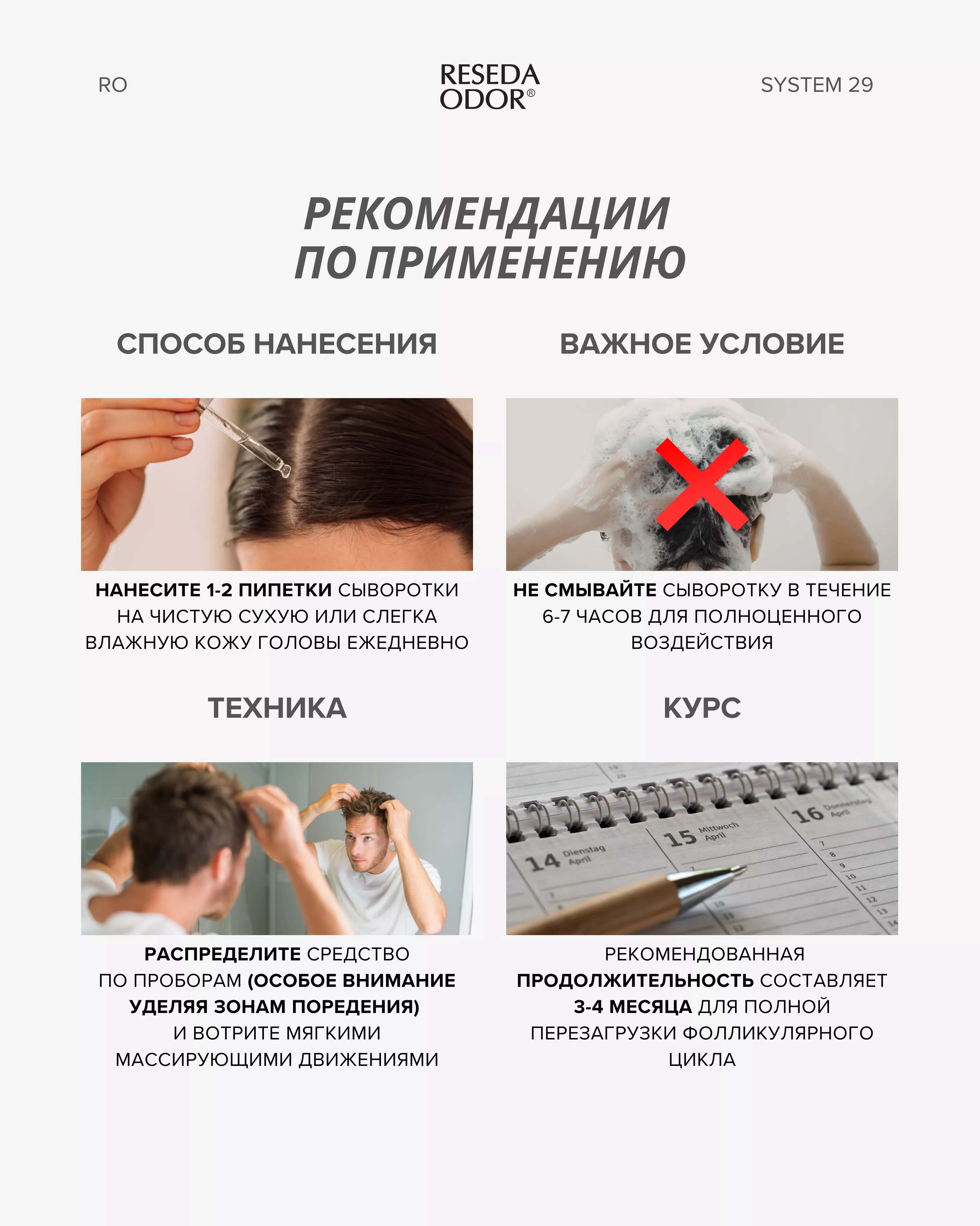 Не смывайте сыворотку в течение 6-7 часов для обеспечения полноценного и эффективного воздействия на фолликулы и кожу головы.