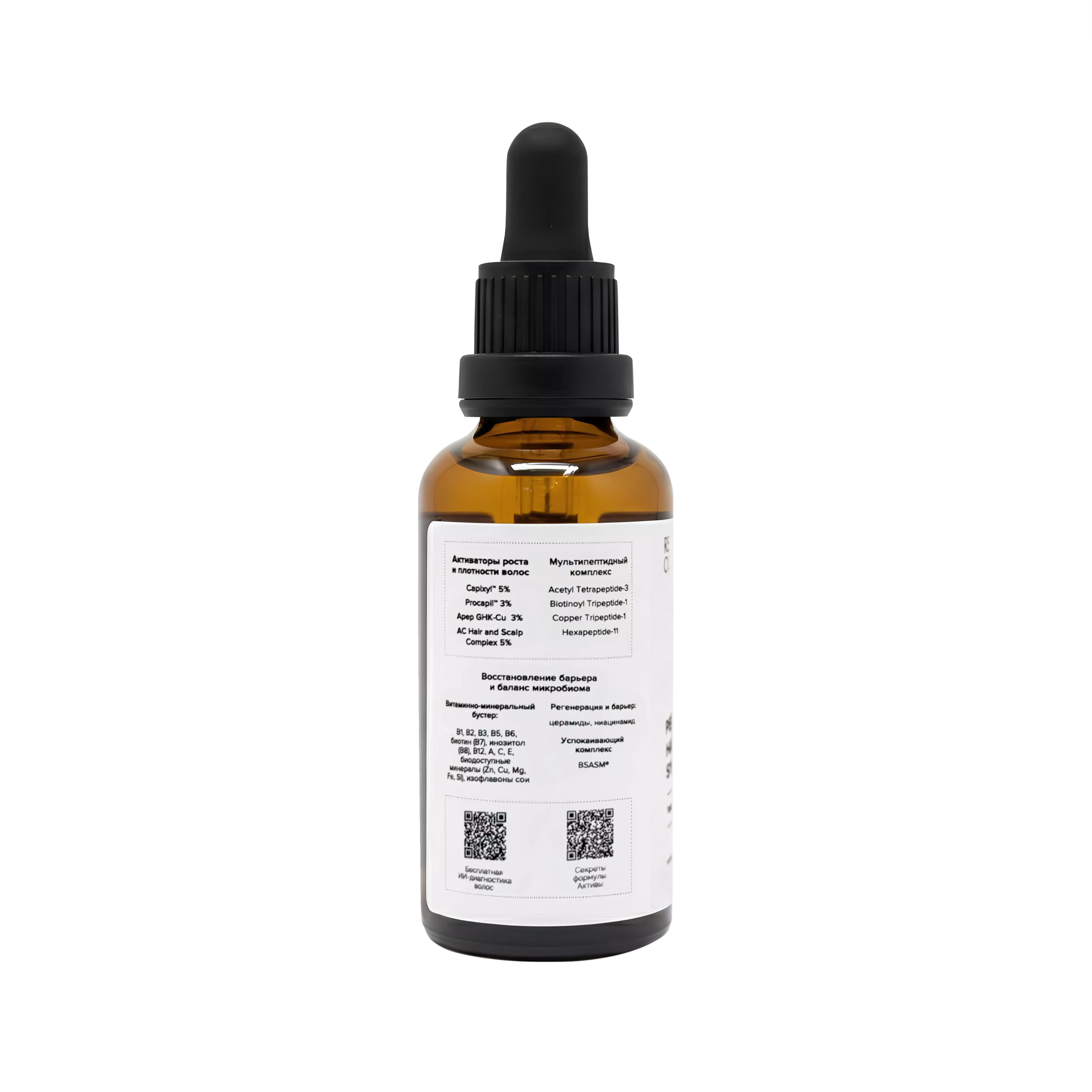 Сыворотка разработана для мягкой и физиологичной реактивации фолликулярного цикла: она способствует продлению фазы роста, снижает преждевременное выпадение, укрепляет фолликулы и улучшает состояние кожи головы. Она действует комплексно и «мультитаргетно» — сочетает пептиды, растительные антиандрогены, витамины, минералы, липидные и успокаивающие компоненты, что помогает создавать условия для формирования более плотных, сильных и здоровых волос.