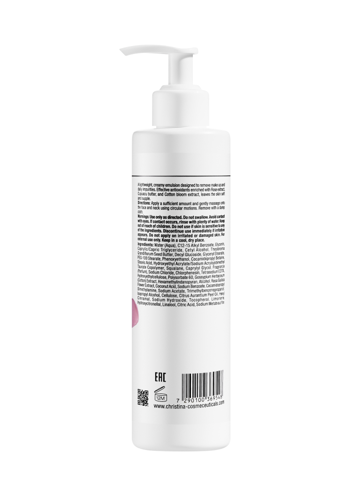 Экстракт розы в составе – мощный антиоксидант, обладает омолаживающими свойствами. Масло купуасу увлажняет и питает кожу, нейтрализует свободные радикалы. Экстракт цветков хлопка укрепляет барьерную функцию, убирает раздражение. Децилглюкозид – растительное поверхностно-активное вещество, которое способствует очищению кожи без пересушивания.
