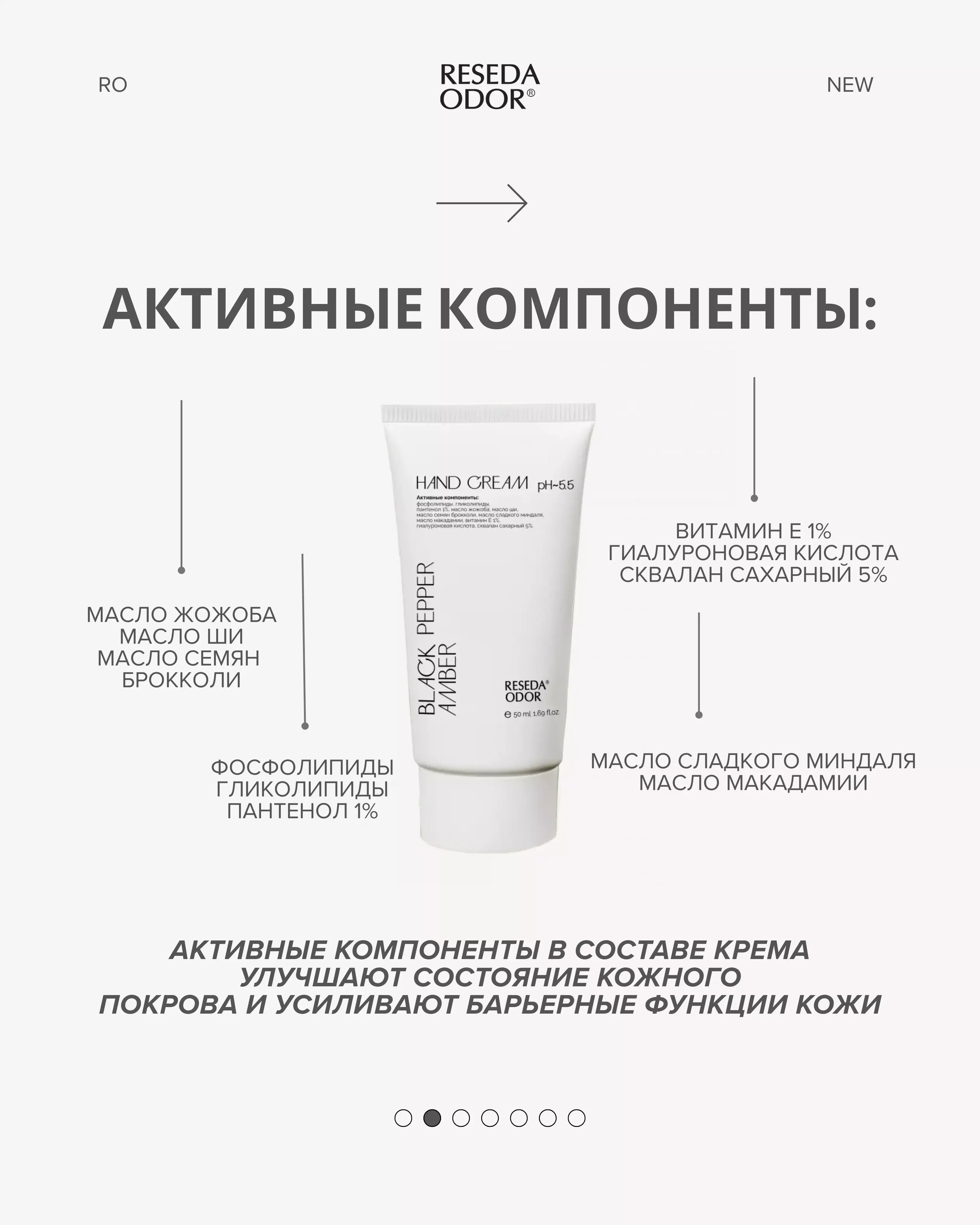 Крем специально разработан для интенсивного ухода за сухой и чувствительной кожей рук. Он глубоко увлажняет, укрепляет кожный барьер и оставляет на коже тонкий шлейф приятного аромата.
